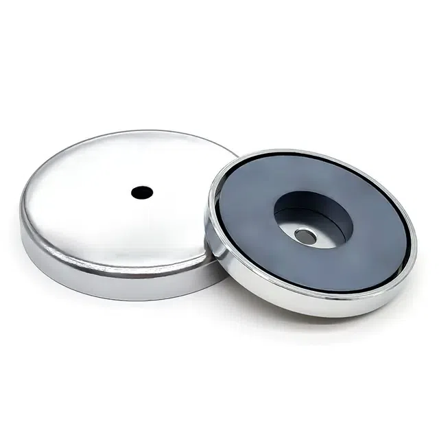 แม่เหล็กหม้อ เฟอร์ไรต์ เป็นแม่เหล็กชนิดหนึ่งที่ประกอบด้วยแกนแม่เหล็กเฟอร์ไรต์ที่ห่อหุ้มอยู่ในเปลือกโลหะโดยทั่วไปจะทำจากสแตนเลส แม่เหล็กเหล่านี้ได้รับการออกแบบมาเพื่อให้สนามแม่เหล็กที่แข็งแกร่งและสม่ำเสมอซึ่งสามารถเก็บวัตถุหนักได้อย่างง่ายดายในขณะเดียวกันก็ให้การป้องกันที่เหนือกว่ากับปัจจัยด้านสิ่งแวดล้อม แกนเฟอร์ไรต์ทำจากวัสดุเซรามิกซึ่งให้แม่เหล็กหม้อคุณสมบัติแม่เหล็กที่น่าทึ่ง ปลอกโลหะช่วยให้มั่นใจได้ว่าแม่เหล็กยังคงความแข็งแรงอยู่ตลอดเวลาให้แรงแม่เหล็กที่มั่นคงและเชื่อถือได้